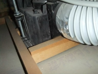 寸三角ぐらいの野縁で換気扇本体をボードと挟み込んであります。